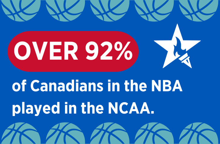 January 19, 2024 Did you know that over 92% of Canadians in the NBA played in the NCAA? 25 out of the 27 Canadian NBA players developed their skills through the NCAA. Read here to learn more.