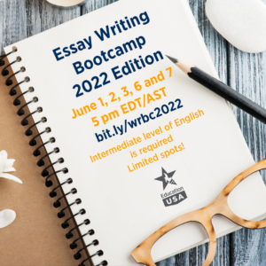 Join the EducationUSA Writing Bootcamp. Participants will receive guidance and personal feedback on admission essays from EducationUSA advisers.
