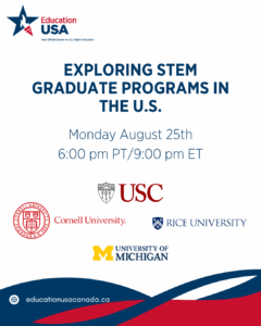 Join Cornell University, Rice University, University of Michigan, and University of Southern California to learn about STEM Graduate programs in the United States.