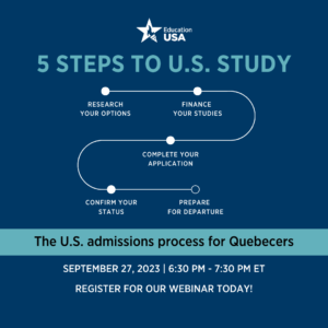 EducationUSA est un service de conseil gratuit financé par le Département d’État américain. La participation à ce webinaire est gratuite. Apprenez-en davantage sur educationusacanada.ca