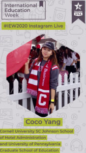 Coco Yang (Vancouver) graduated from the Cornell University School of Hotel Administration and has a graduate degree from the University of Pennsylvania. Tune in on Wednesday, November 18th at 2:30 pm to join our live conversation on Instagram.