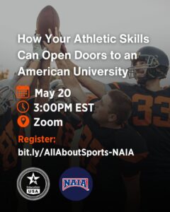 EducationUSA and NAIA (National Association of Intercollegiate Athletics) invite you to an exclusive webinar where you will discover how to combine your passion for sports with a quality education in the USA.
