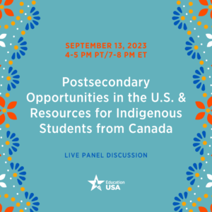 Join this free live webinar to learn about postsecondary opportunities and resources for Canadian Indigenous students who are interested in studying in the United States and how to access them. The webinar features a panel of experts representing different types of post-secondary institutions in the U.S., including tribal colleges and universities, as well as both public and private universities. Participants can submit questions when registering or during the webinar. This webinar will be recorded and posted online for public access.