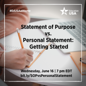 Applying to a graduate program in the U.S.? You will likely have to turn in a Statement of Purpose or Personal Statement. Join us on June 16th to learn the differences between these two essays, and how to get started! Sign up today!