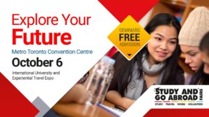 Come to Canada’s largest international university and student travel expo and meet with universities and colleges from around the world – including the United States – offering undergraduate, post-graduate and vocational programs. Visit the special Travel Zone for gap year and other exciting travel options: volunteering; language travel; internships and work abroad programs.