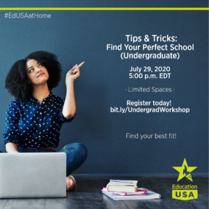 Looking for undergraduate programs? Join us on July 29th in this virtual workshop to navigate tools and resources to identify the U.S. school that is perfect for you! Let’s explore your undergraduate options and create a game plan for a successful admission with EducationUSA! (There’s limited spaces available – Register today!)