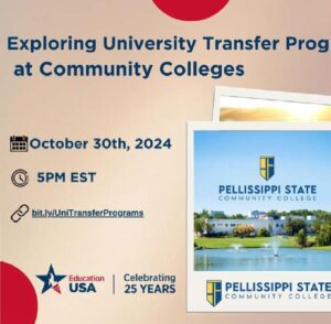 Are you interested in exploring university transfer programs at U.S. community colleges? 🌟 This event is for you! Join us on October 30, 2024, at 6:00 p.m. ET and learn all about the benefits of studying at a community college and how you can transfer to a university.