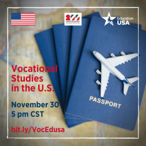 In this session, EducationUSA will interview a Community College representative who will share information on Technical and Vocational programs in the U.S. and a Pilot who completed flight school in the U.S. and is currently employed as a commercial pilot. This will take place on November 30 at 6:00 PM EST.