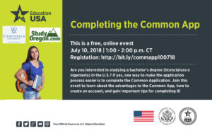 Guest speaker: Maya Hoffman, Assistant Director of International Recruitment and Admission, Concordia University Portland This is a great opportunity for students entering their final year of high school (preparatoria) who are interested in applying to US universities to start studies in August/September 2019. This event is free and open to anyone interested in learning more about the Common Application and connecting with EducationUSA!
